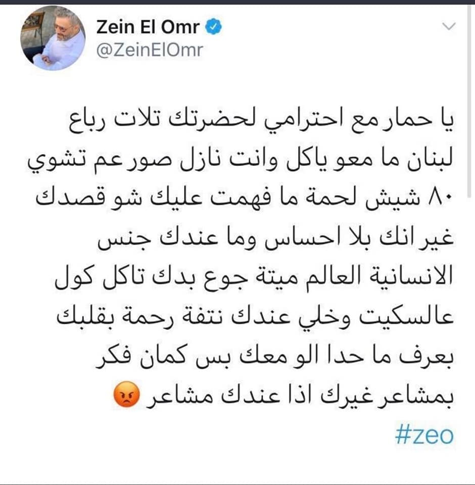 أعلن الفنان زين العمر إعتزاله التغريد على موقع التواصل الإجتماعي تويتر مختارا تغري\ة اعتزال قال فيها “بس ترجع المحبّة على قلوب كلّ اللبنانيين رح إرجع إكتب على التويتر”