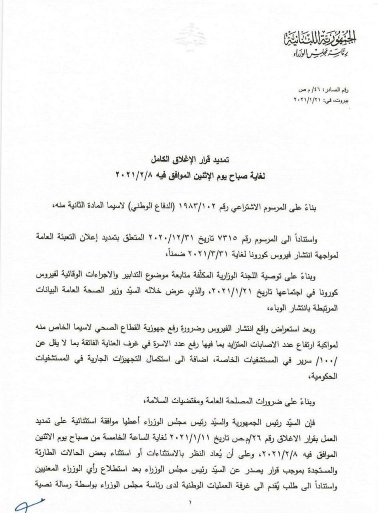 3. تمديد قرار الاغلاق الكامل لغاية 8 شباط
