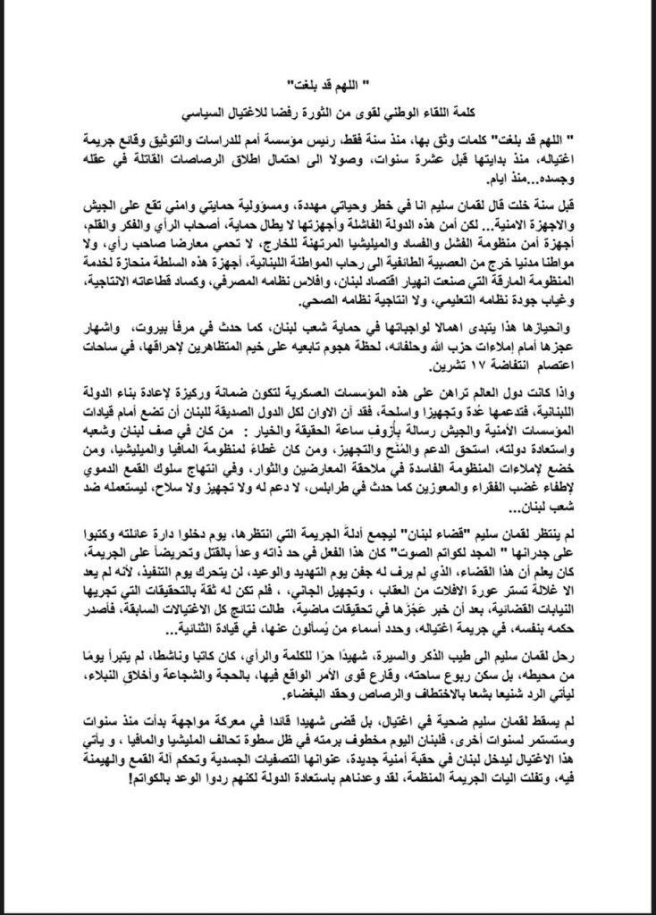 لبنان فبراير 6, 2021 موقع لبيروت 0 اللقاء الوطني لقوى الثورة من ساحة سمير قصير: لرص الصفوف رفضا لاستباحة الدماء 30 0 30 00 0 0 30 00 0 0 previous لقمان... تبّاً للسياسة! next الشيخ عباس الجوهري: المطلوب إبادة فكرة لبنان موقع لبيروت Related Posts هذا ما تحشده إسرائيل ضد “حزب الله” في مناورة عسكرية تستمر أسابيع مارس 15, 2026 موقع لبيروت 0 الراعي: في وقت الحرب الضروس لا مجال لتغيير القادة مارس 15, 2026 موقع لبيروت 0 مصادر دبلوماسية: مفاوضات مباشرة بين لبنان وإسرائيل قريبا مارس 15, 2026 موقع لبيروت 0