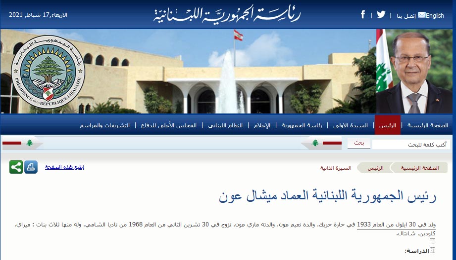 وقد وزّعت حينها سيرة الرئيس عون بأنه من مواليد 30 أيلول/سبتمبر 1933، سجله حارة حريك. وهو ما زال مُعتمداً في سيرته، المنشورة على موقع رئاسة الجمهورية – حتى مساء أمس – ومُوثق أيضاً في أرشيف الكثير من المواقع ومنها، «ويكيبيديا».ما نقوله ليس إفتراء أو «فبركة» أو إجتهاداً، بل استناداً إلى ما ينشره موقع رئاسة الجمهورية؟- فما هي حقيقة تاريخ ميلاد الرئيس عون؟- من يتحمّل مسؤولية هذا اللغط، وأيُهما الأصح؟- إذا كان التاريخ الجديد – أي في العام 1935، لماذا أبقي على التاريخ القديم في موقع رئاسة الجمهورية؟أسئلة بحاجة إلى توضيح بإعتماد التاريخ الحقيقي لميلاد الرئيس، أطال الله بعمر «بيّ الكل».عندما يُوثق المُؤرخون والباحثون مسيرة شخصيات ورؤساء وعهود وحقبات، يذكرون تاريخ الميلاد، وأبرز الإنجازات، والمحطات التي حصلت خلال تلك الحقبات.هذا ما يجب أن يكون واضحاً، حرصاً على دقة توثيق مسيرة العهد في تاريخ لبنان، خاصة أنه يحفل بالكثير من المحطات المُتعددة، التي سيكتب عنها التاريخ، بحلوها ومرّها!كُثرٌ يضطرون إلى تصحيح تاريخ الميلاد الذي قد يكون مُرتبطاً بظروف تتطلب تكبير العمر، بإضافة أشهر أو سنوات للتمكن من تحقيق الغاية المنشودة، خاصة إذا ما كان الأمر يتعلق بالدخول إلى وظيفة عامة أو استحقاق يتطلب ذلك.الأمر ذاته يتكرر بتغيير تاريخ الميلاد، لكن بتصغير السن، إذا ما ارتبط الأمر بقرب الإحالة على التقاعد.بين التاريخ الحقيقي للولادة وتدوينه في السجلات، قد يكون الفارق أياماً أو أسابيع أو حتى أشهر.يرتبط ذلك بأن تكون الولادة خلال فترة وجود العائلة خارج لبنان أو في مكان الإقامة الدائم، وتأخّر الانتقال إلى القرية، ما يُؤخر تسجيل المولود، وهو ما جرى مع أمين عام «حزب الله» السيد حسن نصر الله، المُتعارف عليه بتاريخ 31 آب/أغسطس 1960.هذا قبل أن يُعلن والده الحاج عبد الكريم، أن ميلاد ابنه حسن، كان في فصل الخريف، وتحديداً بتاريخ 28 تشرين الثاني/نوفمبر 1959، لكن سُجل في آب/أغسطس 1960، بسبب التواجد الدائم في بيروت، و«لم يكن لدينا الوقت للذهاب إلى الجنوب» – أي (بلدة البازورية – قضاء صور، مسقط رأسه)، وهو ما أصبح يحتفل به جمهور المُقاومة.في مسيرة الرئيس عون الكثير من المحطات الذي يبرز فيها الرقم 30، الذي حُدد بتاريخ ميلاده على مدى عقود من الزمن:- 30 أيلول/سبتمبر 1958: تخرّج من المدرسة الحربية بُرتبة مُلازم من سلاح المدفعية في الجيش اللبناني.- 30 تشرين الثاني/نوفمبر 1968: تزوج من نادية الشامي.- في ثلاثينات القرن الماضي أبصر النور.أيضاً في حياة الرئيس عون، الكثير من المُصادفات، التي ينسحب عليها الرقم 3، والذي يُمثل الكون المُؤلف من: السماء، الأرض والبحار، وهو رقم مُقدس عند الساميين:- 23 حزيران/يونيو 1984: تولى قيادة الجيش اللبناني.- 30 أيلول/سبتمبر 1989: رفض «اتفاق الطائف»، الذي توصّل إليه نواب لبنانيون، بعد جلسات حوار في مدينة الطائف في المملكة العربية السعودية، والذي أصبح لاحقاً «وثيقة الوفاق الوطني».- 31 كانون الثاني/يناير 1990: «حرب الإلغاء» بين الجيش اللبناني بقيادة العماد عون و«القوات اللبنانية» برئاسة سمير جعجع، استمرت لمُدة 6 أشهر، وأدّت إلى دمار وخسائر فادحة.- 13 تشرين الأوّل/أكتوبر 1990: الانتقال إلى السفارة الفرنسية بعد قصف القصر الجمهوري.- 30 آب/أغسطس 1991: غادر لبنان إلى قبرص ومنها إلى فرنسا عبر سفينة حربية فرنسية، حيث مكث هناك 15 عاماً.- لديه 3 بنات.- 31 تشرين الأوّل/أكتوبر 2016 انتخب رئيساً للجمهورية.- الرئيس الـ13 للجمهورية اللبنانية.هذا فضلاً عن محطات أخرى، في طليعتها:- 22 أيلول/سبتمبر 1988: عيّنه الرئيس أمين الجميل مع انتهاء ولايته، رئيساً للحكومة إنتقالية عسكرية، بناءً على المرسومين رقم 5387 ورقم 5388، مع الاحتفاظ برتبته العسكرية في الجيش.- 12 تشرين الأول/أكتوبر 1990: قوات الجيش السوري تقصف القصر الجمهوري في بعبدا، حيث كان يُقيم العماد عون، فالتجأ إلى السفارة الفرنسية، ومكث هناك 11 شهراً قبل أن يُمنح عفواً مشروطاً من الحكومة اللب