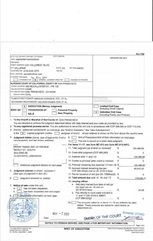قضت المحكمة الفيدرالية الأمريكية في ولاية كاليفورنيا وفلوريدا لصالح شركة بترا ومالكها المتعهد الفني إبراهيم كرادشة بمبالغ كبيرة نتيجة الخسائر التي تكبدتها الشركة بسبب الإخلال بالاتفاق مع ادارة إعمال الفنان اللبناني ملحم زين ، وكانت شركة بترا قد أبرمت اتفاق قبل 7 سنوات على إقامة مجموعة من الحفلات الفنية بعدد من الولايات الأمريكية ، والتزمت الشركة بكافة بنود الاتفاق واستخراج تأشيرة للفنان ملحم زين وفرقته الموسيقية ، لتكون المفاجأة بعد ان أعطت الحكومة الأمريكية التأشيرة لأعضاء الفرقة إلا إن الفنان ملحم زين تبين بأنه ممنوع من دخول الأراضي الأمريكية لأسباب أمنية .