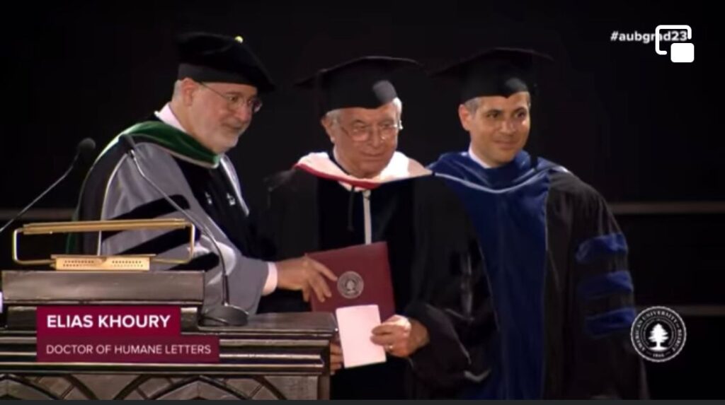 لماذا أتوا بي إلى هذه المنصة؟ ولماذا يكرمني فيليب خوري وفضلو خوري ورفاقهما من أعضاء مجلس الأمناء، بأعلى شهادة فخرية تمنحها الجامعة؟